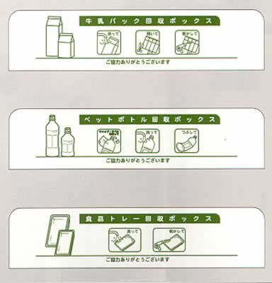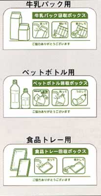 リサイクルへの関心が高まっており、公共施設やスーパーなどの小売店舗が 分別・リサイクルの窓口となっています。 主に公共施設やスーパーのエントランスに分別リサイクルコーナーを設置し、 牛乳パック、ペットボトル、食品トレーを分かりやすく分類します。 |