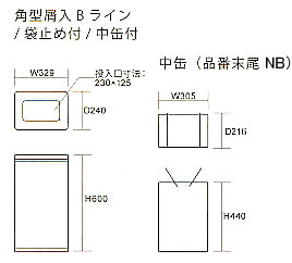 ■仕様![]() ■袋止め付タイプ(品番 末尾BB-35.7L)の使用例 ![]() ■付属品(品番末尾 NB-35.7L):中缶 材質:亜鉛メッキ鋼板(板厚:0.3) ![]() ■寸法図 ![]() ■仕様