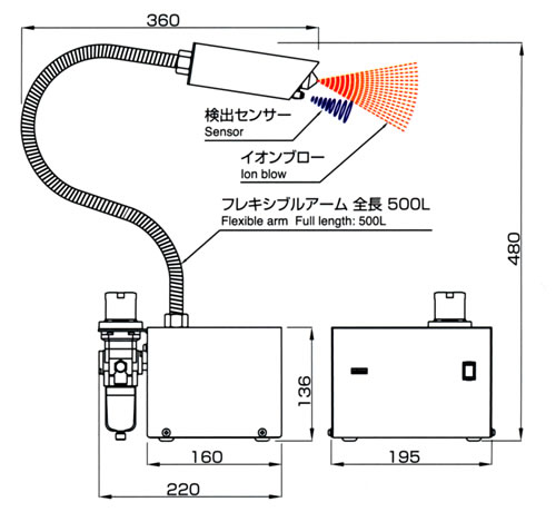 ●両手でラクラク作業 …ワークを近づけるだけでイオンブローを噴射 ●超小型イオナイザ採用 |