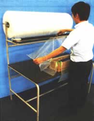 きれいにカットできるカッターレール付きの軽作業テーブル ロール形状の粒状空気緩衝材発泡シート緩衝材専用 シンプルでも使いやすさ満載です。 |