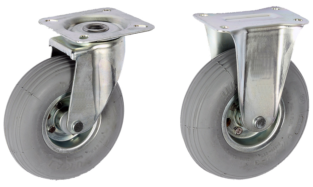 ■オプション ●M623LA-J/K2530HPK-GYは空気入りタイヤ付なのでクッション性抜群 ●M623LA-J/K2530HPK-AFG-GYは空気入りタイヤに熱可塑性樹脂(AFG)を注入により、ノーパンク仕様に。メンテナンスフリーで、クッション性も抜群! ●床面を汚しにくいグレータイヤです