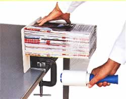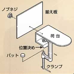 | ■特長 ●荷物と荷台を一緒にグルグルと巻き付けます。 ●引きちぎるとフィルム同士が密着して結束ができます。 ●結束後は荷物だけを持って引き抜きます。 ●荷底掛けが簡単で結ばない結束が大変便利です。 ■取り付けは簡単 本器の位置決め部を作業台の端に当てるとポジションが即座に決まります。 都合のよい場所取り後、クランプ位置を調節してクランプします。 ※荷台の幅より大きな荷物を積載します。 ■各種の結束資材が使用できます。 ![]() ■揃え板を付けると荷物の一端が揃います。 荷崩れする雑誌や古新聞紙も荷台と一緒に結束します。 結束後は荷物だけを持って引き抜きます。 ![]() ■揃え板を取り除くと大きな荷物が積載できます。 大小混載の荷物も荷台の中心に置いて結束ができます。 結束後は荷物だけを持って引き抜きます。 ![]() ■各部名称 ![]() ■仕様