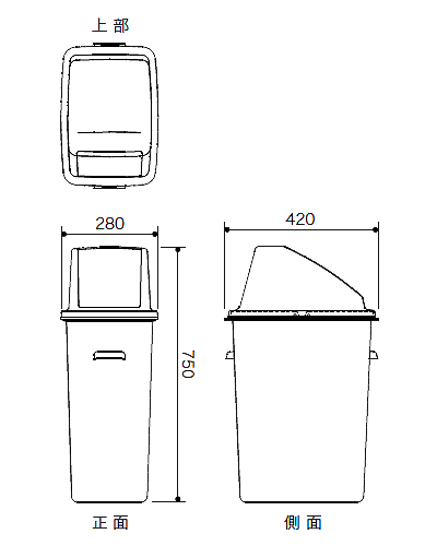 | ■特長 ●エコロジーカラーで仕上げたシンプルデザイン。どんな場所にも違和感なく溶け込みます。 ※本容器はリサイクルした原料でつくられていますので、多少の異物、色調の違いがある場合があります。 ●インナーセットシステム(袋止め) スッキリ美しいゴミ袋インナーセットシステム ![]() ■寸法図 ![]() ■仕様