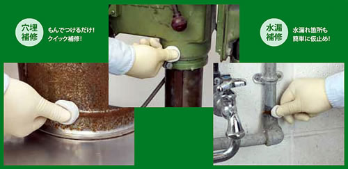 ●スティックタイプの緊急補修剤。 ●タンク、ドラム、鋳物等各種容器や、配管などの機械設備の応急補修、破損した陶器などの形状再生に。 ●必要なだけ切り取って揉むだけで、あらゆるものへの緊急補修ができます。 |