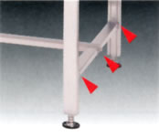オールステンレスSUS304製でさびに強い ●非帯磁性でさびに強いSUS304を使用しています。(ボルト・アジャスターもSUS304製です) ●クリーンさを要求される場所や水回りでの用途に最適です。 |