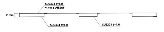 | ■特長 ●美しいヘアライン仕上げ 表面仕上げは、美しいヘアライン仕上げ。 細かなキズや指紋が目立たず永くご使用いただけます。 ![]() ●樹脂パット付ステンレス製アジャスター 脚元までしっかりとステンレス仕様。 床の水洗いなどで濡れてもさびの心配は無用。 樹脂パッド付きですので床を傷つけません。 (PVC再生樹脂100%) ![]() ●ツナギ取付け位置 ツナギは前側・中央・後ろ側の3ヶ所どこでも取付け可能です。 ![]() ■ステンレス鋼の種類(特性・用途) Ni-Cr(ニッケルクロム系ステンレス)オーステナイト系(SUS304) ●特徴 延性・靭性に富み、深絞り・曲げ加工など冷間加工性が良く溶接性も優れている。 ※磁石につきにくい。耐食性・加工性高い ●用途 家庭用品、食品工業、薬品工業、建築用、原子力発電など。 ■天板断面 耐腐食性、耐薬品性に優れたSUS304材を使用した天板です。 表面はヘアーライン仕上げを施し美観に優れます。 材料特性としてサビにくく磁性を帯びないのでクリーンな環境でのご使用に適しています。 ![]() ■使用例 ※ステンレス作業台M651S3-1875YとステンレスワゴンM651S3-664-2CSの使用例 ![]() ■寸法図 ●正面図