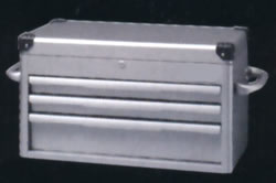 ■特長 ●機能とデザイン性 インナーラッチ機構採用。前面大型モール。 引出しは、全段インナーラッチ機構採用で不意の飛び出しを防止。 モールとラッチを別体することで耐久性を高めています。 ![]() ●信頼できる使いやすさ レールガイド厚型鋼板採用。 引出しレールは、ガイドによる取付け方法を採用。 1.2mm厚型鋼板の多用と共に引出しの剛性を確保、長期にわたり使い心地が変わりません。 ![]() ●剛性と美しさの両立 インナーフレームCO2・スポット溶接。 M653KW-1003Kの特長でもあるフラットな側面は、インナーフレームによる剛性確保によって実現したもの。 M653KR-1003Kにも同様のインナーフレーム構造を採用しています。 ![]() ●安全へのこだわり ラウンドシェイプエッジ折返し処理。 人が触れるところには、徹底的な曲げ加工を施しています。 外部だけでなく引出しの断面にまで処理を加え、切傷などケガのリスクを軽減しています。 ![]() ●トップカバー トップカバーと本体の接地部分は鋼板の断面でなく、面による接合方式を採用しています。 ![]() ●コーナーバンパー コーナーバンパーは、不慮のケガのリスクを軽減。 チェスト本体の保護にも貢献します。 ![]() ●大型ハンドル 作業性と安全性を考慮し、持ちやすく手を挟みにくい固定式大型ハンドルを採用。 ![]() ■外形寸法