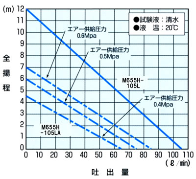 最大吐出量 105リットル/min 大吐出量、高揚程 |