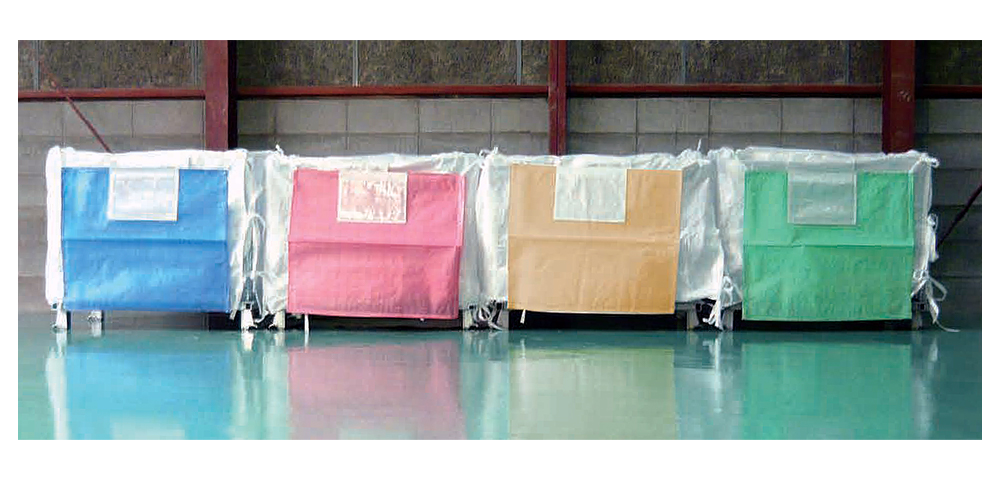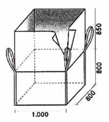 | ■特長 ●堅牢なボックスパレットにジャストフィット。 600Lまたは1000Lのボックスパレットにセットして使用するフレコンバッグ。 ●ボックスパレット設置時内容物表示ポケット付き ●投入部密閉式で内容物の飛散を防ぐ ![]() ●分別カラーシート(オプション)の併用で美観アップ。分別を促進。 ![]() ●4点ベルト仕様でフォークリフトやクレーン等さまざまな重機に対応。 ![]() ■寸法図