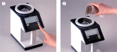 そば専用の水分計。同時に容積重の測定も可能。 |