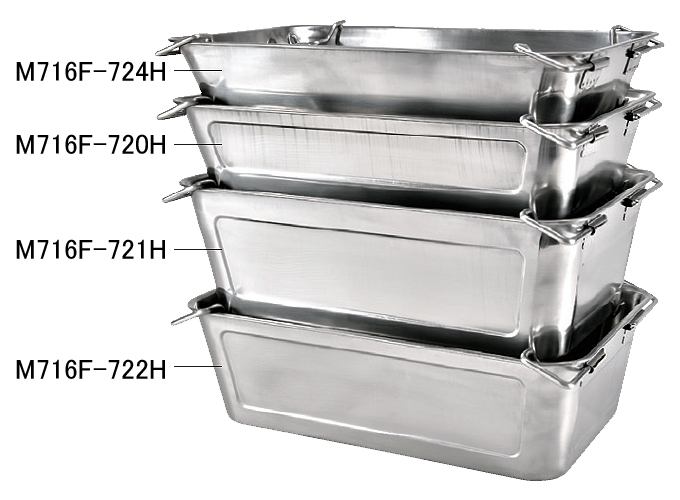 | ■特長 ●水切りタイプ(M716F-720-PHシリーズ)と組み合わせが可能です。 ●底面のサイズが共通なので積み重ねが可能 ![]() ●把手にストッパーがついているので重ねたときにぐらつかず、真っすぐ積み重ねられます。 ■寸法 ![]() ■タイプ