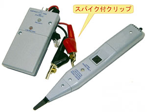 ■特長 1.ADSL回線を借用なしで探索出来ます。 2.デジタル回線の強いノイズにも影響されません。 3.使いやすい特許の感度調整ボリューム。 4.自己保持型スイッチと5分間オートパワーオフ。 5.被覆上から送信できるスパイク付高級クリップ。 6.使いやすいベルトフック付の専用ケース付です。 7.コンピュータールーム等の強いノイズ環境に対応。 ■標準装備 ・ノイズレス探索 ・ADSLデータセーフ ・ブレスト電源配給 ・導通チェック ・極性チェック ・高級ワニ口クリップ ・専用ケース ■使用例 ![]() ■機能詳細 ![]() ■仕様