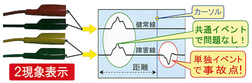 ●電話回線用”2現象TDR”事故点検出装置。 ●健常線と障害線を比較対照して障害箇所を正確に検出できる必須の2現象モード装備。 ●ケーブル全長と事故点までの距離検出。 ●取説不要の画面追従型の簡単操作。 |