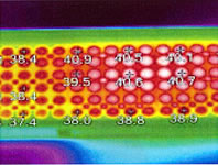 しかし、この放射温度計を使えば手動に切り替え細かな温度レンジ設定ができるのでホットスポットも簡単に発見できます。 |