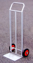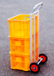 ■アルミ四輪二輪車/品番 M778L4-48N特長 ●レバーを握ると後輪が広がり四輪になる。腕への負担を軽減する。 ●テコ応用で7~8cmの段差越えができる ■仕様 荷台サイズ:230×370×高さ1150mm共通
