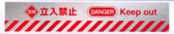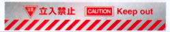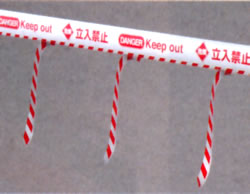 揺れるトラバリケードにシルバーが登場。 テープのミシン目を切り離すと、メッセージフラグに。 ヒラヒラと揺れて、さらに強く注意を促します。 |
