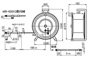 ●マイクロホン延長ケーブル マイクロホン部と本体部を切り離し、専用のマイクロホン延長ケーブルを使用して、長距離延長する事が出来ます。多芯のケーブルは重くなりがちですが、専用のマイクロホン延長ケーブルは同軸ケーブルですので、100mの延長でもコードリールは小型で済み、現場での移動も楽になります。 ・マイクロホンホルダー(M7I-0301O)付きです。 ・コートリール付き延長ケーブルには、騒音計本体と接続するケーブル(5m)が付属しています。 ・延長ケーブルを複数つないで長くすることが出来ます。