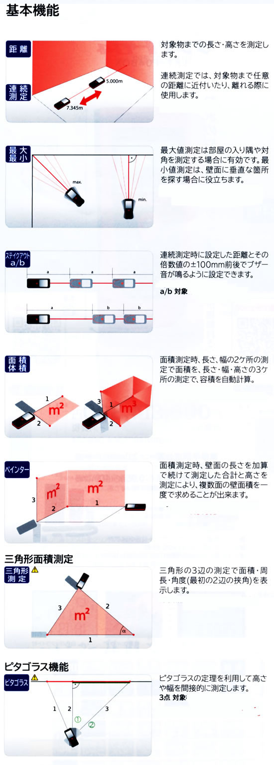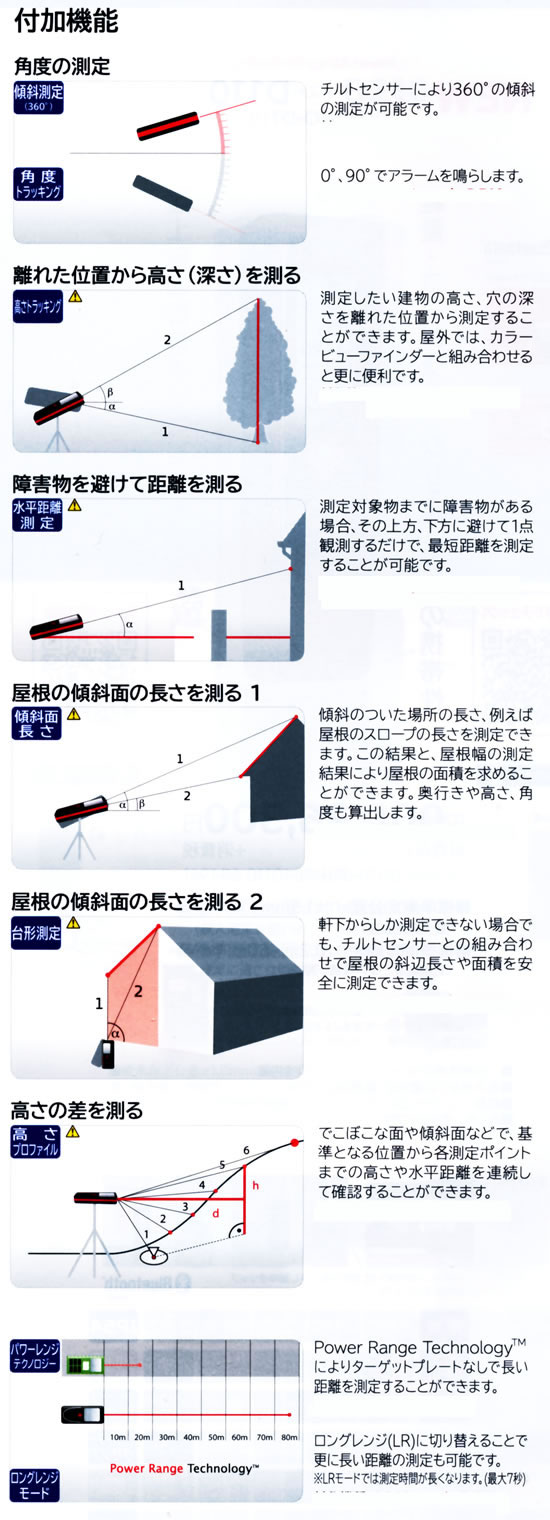 ●長距離や間接測定(高さトラッキング、水平距離測定)