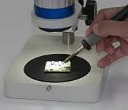 | ■特長 M856M-S20ATVSは、テレビモニタで観察するマイクロスコープです。 41万画素のイメージセンサーを搭載していますので、テレビモニタ上で綺麗な映像が表示できます。 また、テレビモニタならではの動画表示の滑らかさは、ストレスなく観察できます。 インラインでの検査用に最適なマイクロスコープです。 勿論、市販のビデオ機器との接続も問題なく行えます。 ■くっきり映像で簡単に顕微鏡検査が出来ます。 プリント基板を斜め(45度)から撮影 ![]() ■照明SW、調光付 ![]() ■上段:倍率表示/下段:作動距離 ![]() ■ストッパー付ピント調整機構 ![]() ■内蔵照明(LED) ![]() ■各倍率の観察範囲と作動距離(本体先端から被写体までの距離) ・倍率:15インチ液晶モニタでの倍率 ・観察範囲:観察できる最大範囲 ・作動距離:スコープと観察物の距離