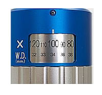 ■クリック機構付の倍率表示 観察範囲:観察できる最大範囲 W,D.(作動距離):マイクロスコープ先端から観察物までの距離。倍率は20インチモニタ(UXGA)上での値です。