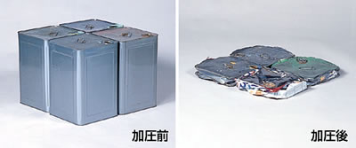 ●食品缶、ペンキ缶、一斗缶等をおよそ1/10に減容。(M871B-23C)
