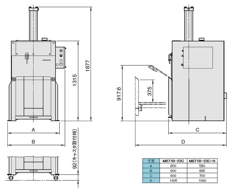●スチール飲料缶等の、固い缶の圧縮に対応(M871B-23C-H)