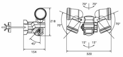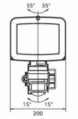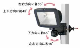 | ■特長 ●500Wハロゲン球の強力な光で不審者を威嚇。 ●ライトとセンサの角度を個別に調節可能。 ●作業灯としても使える連続点灯機能付き。 ●屋外駐車場や倉庫などの広範囲に最適。 ●ポール・壁面・スイッチボックス取付型。 ![]() ■検知エリア図(2.5m取付時) ![]() ■寸法図 ![]() ![]() ■仕様