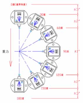 0〜30度±3度・30〜60度±2度・60〜120度±1度・120〜150度±2度
