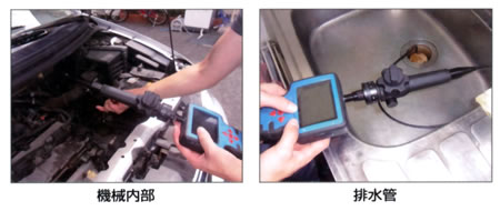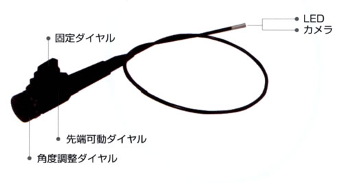 見えないところを映し出す。 高い所も、狭い隙間もこれひとつ。 レンズ直径5.5mmの細さのチューブで、先端が左右に90°ずつ、最大180°まで可動します。 ダイヤルを回すことで、チューブが回転するため、フレキシブル本体を動かすことなく、狭い隙間などの見えにくい場所をしっかりと確認することができます。 |