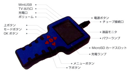 ■特長 ●チューブの先端が可動するタイプ M926FX-S55Rは、チューブの先端を手元のダイヤルで可動させることができます。 左右90°ずつ、最大180°可動することができます。 ![]() ●5.5mm径のIP67準拠防水レンズ搭載 チューブ、レンズ部はIP67準拠の高い防水能力。 ケーブル径が5.5mmと細いため、様々な場所で使用することができます。 ![]() ●撮影したデータをMicroSDに保存 撮影した静止画・動画は、MicroSDカードへ保存されます。(最大16GB) カードを取り外せばパソコンやプリンタで使用できます。 ![]() ●モニタの映像をTV表示 付属のビデオケーブルでモニタとTVを接続。 モニタの電源を入れるだけでTVへの映像の出力ができます。 会議など、大画面で表示させたい時にオススメです。 ![]() ●持ち運びに便利なスーツケース入り 製品は持ち運びに便利なスーツケースに入っています。 カメラの付いているチューブもしっかりと保護でき、移動に大変便利です。 ![]() ■各部名称 ![]() ![]() ■使用例 ![]() ![]() ■内容物一覧