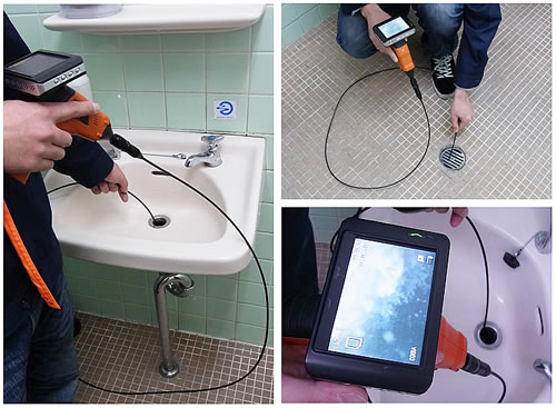 チューブ部、カメラ部はIPX7相当の防水仕様。画面を内蔵した本体部分はIP54相当の防滴仕様。そのため、排水管や排水溝など水回りでの利用も可能です。