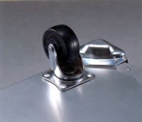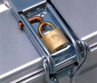 ■オプション ●施錠-A式 アルミコンテナトランクの掛金具に南京錠を取り付けて施錠できます。 ![]() ●施錠-B式 アルミコンテナトランクの蓋部にシリンダー方式のカギを取り付けます。 ![]() ●キャスター キャスターを取り付ければ、1人でも手軽に運べます。 ![]()