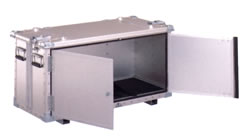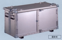 ■特長 ●M928AL900-TR ・保管用ロッカーとして使用可能(蓋及び前扉に施錠できます。) ・環境防水仕様で、3段まで積み重ねて使用できます。(野外に長時間放置する場合は、テントをかぶせてください。) ・JIS・1100型パレット(1,100×1,100mm)に2台搭載可能。 ・このコンテナーは固定式です。折りたたみできません。 ●M928AL843(844・944)-TR ・機材保管・輸送用コンテナー標準品です。 ・高張力アルミ合金(板厚2mm)を使用、堅牢かつ軽量な構造です。 ・環境防水仕様です。ふたにはパッキンが装着されています。(野外に長時間放置する場合は、テントをかぶせてください。) ・オプションとして南京錠やシリンダー錠による施錠も可能です。(別途) ■仕様