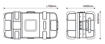 ■特長 ●ドライブハンドル 強化収納型ドライブハンドルを装備。 快適な搬送をサポートします。 (M928P-15F/20F/220F) ![]() ●4輪キャスター 新開発の大型固定キャスター。 ワイドトレッド化する事により大幅に耐久性がアップ。 また直立時にはサブキャスターが携行性能を発揮します。 (M928P-20F/220F) ![]() ●大型2輪キャスター 新開発の大型固定キャスター。 ワイドトレッド化する事により大幅に耐久性がアップ。 快適な搬送をサポートします。 (M928P-15F/8SWCF/120F) ![]() ●着脱式キャスター 着脱自在のキャスター。 簡単に取り付けられ、容易に外れない半月型スプリング構造です。 (M928S-1F・M928P-4F・M928D-50F/70F/80F) ![]() ●内装用カットウレタン カットウレタンはカッターなどで収納物に合わせて簡単に切ることが出来ます。 (全製品標準装備) ![]() ●スタッキング可能 スタッキングシェル形状により同型番の積み重ねが可能。 高い保管効率を誇ります。 (M928P-15F/120F・M928S-1F) ![]() ■外形寸法