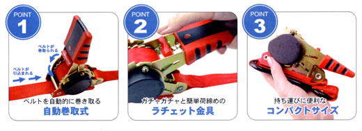 ■自動巻取式ラッシングベルトにはこのような利点があります!!
