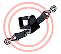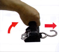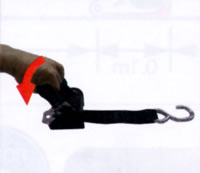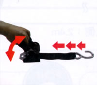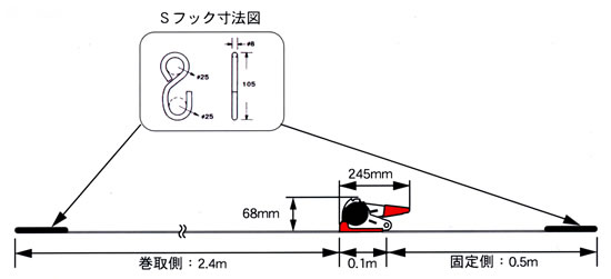 使わないときはベルトが自動的にラチェット金具に巻き取られる画期的なラッシングベルトです。 両端Sフック付き |