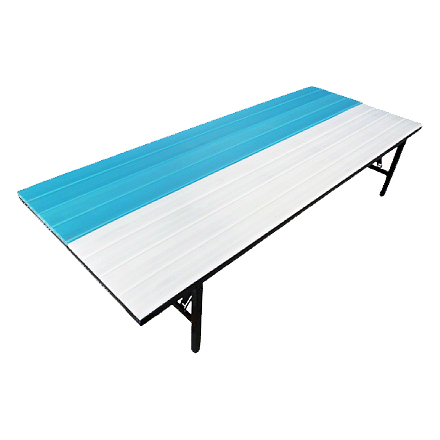 | ■特長 ●丈夫で軽い!スノコタイプの折り畳みベンチです。 ●通常、大人が4人座ることができます。 ●バンパー用の材質なので滅多に割れません。 ●色はアイボリーとブルーの2色展開です。 ●開閉作業はすこぶる迅速・簡単