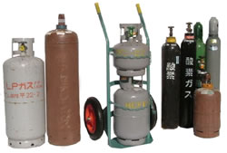 | ■適用容器(多目的兼用タイプ) ●プロパン 20k~10k ●フロン 20k~10k ●アセチレン 7k~2k ●小瓶容器 2.0m3~0.5m3束ね ■使用例