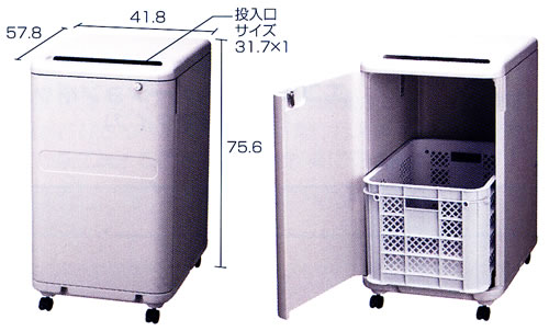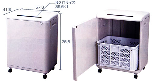 ●手が入らない投入口。 ●鍵付きで安心。 ●多い量でも収納します。 ●キャスター付きで移動がラクラク。 ●盗難防止フック ●スッキリ段ボールが入ります。 |