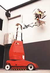 最大作業高10m 張出し作業が最大3mでき、広範囲の作業が可能です。 全高198cm、全幅81cm(MB20N)のため狭い通路や通常間口サイズの通過が可能です。 ノンマーキングタイヤは屋内作業に最適です。 マストは360° 旋回します。 ジブブームにより最適なポジショニングが得られます。 定員2名、積載荷重215kg |