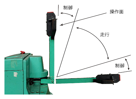 セイフティースイッチを装着、走行時オペレーターに触れると逆発信します。