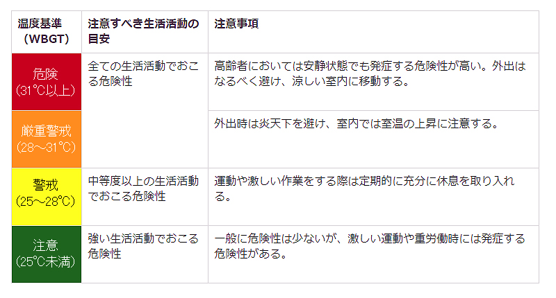 | ■特長 ●WBGT指数、WB(湿球温度)、dP(露点温度)、tA(気温)とrH(相対湿度)、tg(黒球湿度)のモードから選択して 測定/SDカードへのデータ記録が可能です。 ●記録データは市販の表計算ソフトウェアで利用できるので、様々な用途に活用できます。データは自動記録と手動記録から選択可能。自動記録のサンプリング設定時間は1~3600秒の間で11段階より選択可能。 ●暗所でも見やすいグリーンバックライト機能付き。 ●測定値を一時的に表示固定するホールド機能付き。 ●測定値の最大/最小値を記憶する「MAX/MINメモリ機能」付き。 ●電池の消耗を防ぐため一定時間本器を操作しないと自動的に電源が切れるオートパワーオフ機能を搭載。 ●WBGT指数の値でアラームを設定できます。 ■機能 以下の5種類からモードを選んで測定できます。 ●WBGT指数 ●WB(湿球温度) ●Dew Point(露点温度) ●TA(気温)、RH(相対湿度) ●TG(黒球温度) ■SDカードを装着して、測定結果を記録することが可能です。 SDカードの記録データは、CSVファイルとしてExcelなどの表計算ソフトに取り込みが可能です。 ■熱中症(WBGT)指数とは 熱中症はスポーツ活動ばかりではなく日常生活や職場でも発症します。熱中症の予防対策として、WBGT(Wet Bulb globe temperature、湿球黒球温度)を「温度基準」として、その温度レベルによって「危険」(31℃以上)、「厳重警戒」(28~31℃)、「警戒」(25~28℃)、「注意」(25℃未満)の4段階に分けられています。このWBGTを求めるには、黒球温度計を用いるのが一般的です。 ![]() ※ここでのWBGTはその日の最高気温時の気温と湿度から推定されるものである。 ※28~31℃は、28℃以上31℃未満の意味 ■電気的性能