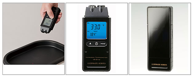 ●ピアノブラック基調の洗練された小型デザインの表面温度測定用の温度計。非接触で対象物の温度測定が可能。 ●測定位置の目安がわかるレーザーマーカー機能付き表面温度測定用温度計。 ●物体表面温度測定範囲:-30~+550℃ ●内蔵温度センサーで周囲環境温度(-10~+60℃)の測定も可能。 ●温度表示:0.1℃単位 ●約1秒で表面温度の測定が可能。 |