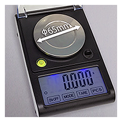 | ■特長 ●最小表示0.001g単位で最大50gまで測定可能。 ●計量皿の寸法は直径65mm。小さな測定対象物も乗せやすい大きさです。 ![]() ●風などの影響から計量皿を守るカバー付き。 使用用途に合わせてカバー全体と中央の窓をそれぞれ開けることができます。 ![]() ![]() ●重さから数量をカウントする「数量カウント機能」 基準を設定し、部品などの数量を推計します。計数作業に最適です。 ●容器の重さを差し引きできる風袋機能を搭載。 ●見やすいブルーのバックライト採用。 ■仕様