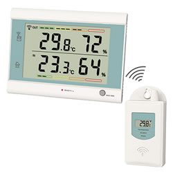●無線で離れた場所の温湿度を測定します! ●倉庫、ベランダ、軒下などに設置して室内外の温湿度を測定 ●離れた場所の環境管理に最適 ●子供部屋に設置して、お子さんの熱中症予防に ※接続は親機と子機の1対1になります。親機1台に対して、複数台の子機は使用できませんのでご注意下さい。 ※本器は日本国内専用です。海外でのご使用はできません。 This product is designed for use in Japan. |