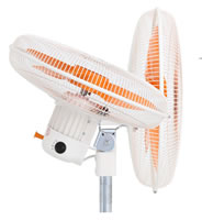 丈夫なスイデン工場扇に1本脚 スタンドタイプが登場! 上下の首の調整角度が最大65度(6段階) |