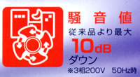 それにより従来機比10dBの低騒音化と最大約23%の省エネを実現しました。(3相200V 50Hz時)