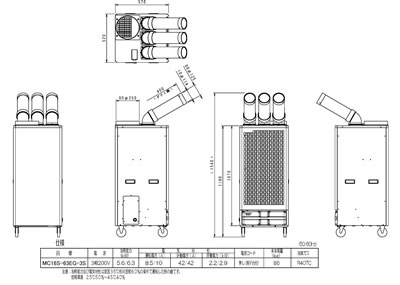 | スポットエアコン3口ドレン(首振り無し)/品番 MC16S-63EG-3S |