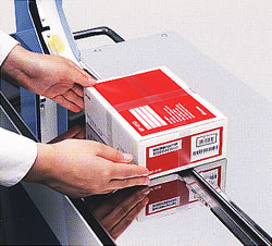 超薄テープ=スーパースリムテープ専用の自動梱包機 使用するテープの厚さは0.2mm(200ミクロン)。 PPバンドの強さとフィルムテープのしなやかさを合わせ持つ画期的なテープ。 そしてテープ幅はちょっと幅広の19mm。 品物のカドに食い込むことなくピッタリと、タイトに、そしてしなやかに・・・。 これまでのバンド掛けイメージを一新する、まったく新しい自動梱包機です。 品物を開梱したあとのテープ処理も、より少量に止まるなど、廃棄物の減量にも貢献します。 |