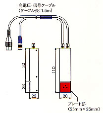 ■測定モード ●マニュアルモード ①イオンバランス測定モード プレート電圧は平均値表示(20ms毎に測定した値の最大値・最小値を除いた平均値) 0.2s:8ポイントのデータの平均を表示 1s:48ポイントのデータの平均を表示 5s:248ポイントのデータの平均を表示 10s:498ポイントのデータの平均を表示 測定時間設定(10sec,30sec,60sec,連続) 設定した測定時間内の平均値・ピーク値・バレー値を表示 ②減衰時間測定モード プレート電圧は平均値表示(20ms毎に測定した値の最大値・最小値を除いた平均値) 減衰時間の表示(Fastモード:0.1sec~99.9sec,Slowモード:100sec~300sec) 測定時間設定(10sec,30sec,60sec,120sec,300sec) 極性毎の測定(正負の各極性で減衰時間を測定) 測定終了電圧設定(5V~100Vまで5Vおきに設定可能) ●オートモード(自動測定) ・イオンバランス測定:イオンバランス測定モードで設定した測定時間(連続は120s)内の平均値・ピーク値(最大値)・バレー値(最小値)を記憶 ・減衰時間測定:減衰時間測定モードで設定した測定時間・測定終了電圧で測定して正負の極性の減衰時間を記憶 ・データセーブ:測定終了後、「SAVE」ボタンで内部メモリに測定値を記憶(最大1000件)記憶したデータはUSB(Mini-B)端子よりコンピューターに「CSV」形式でダウンロードが可能 ■オプション